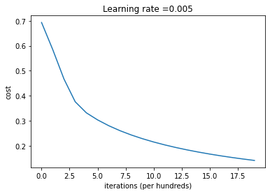 def model(X_train, Y_train, X_test, Y_test, num_iterations=2000, learning_rate=0.5, print_cost=False):