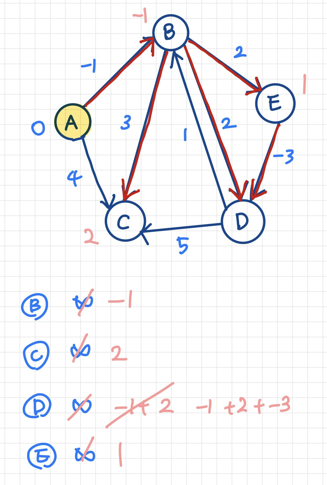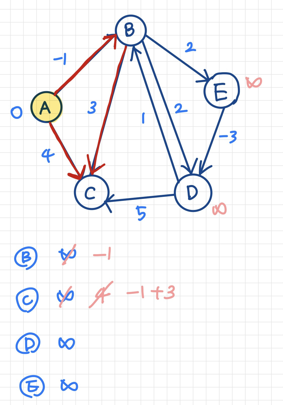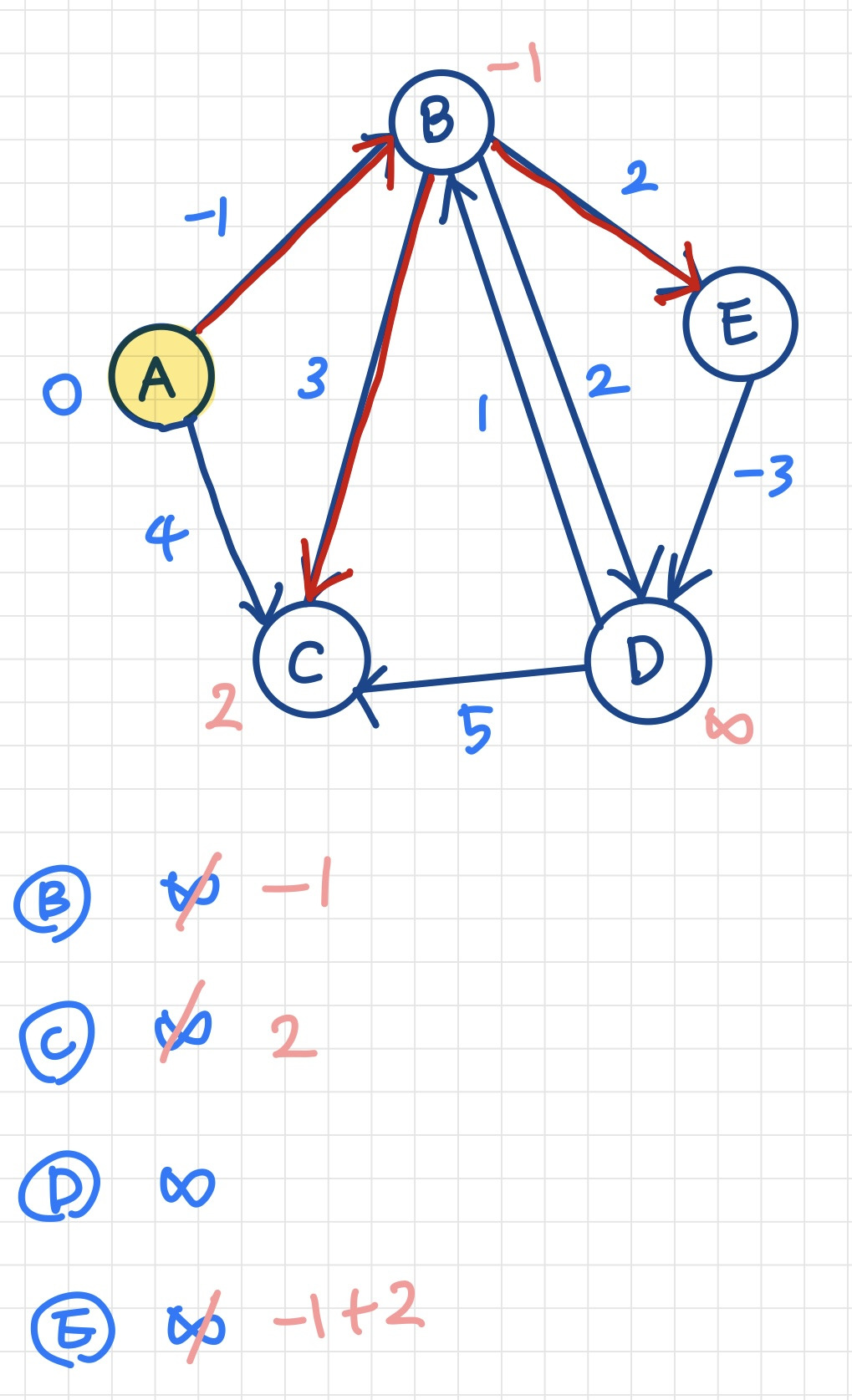벨만포드 알고리즘예시 ↓위에 제시된 예시의 벨만포드 알고리즘 과정을 그림으로 표현↓