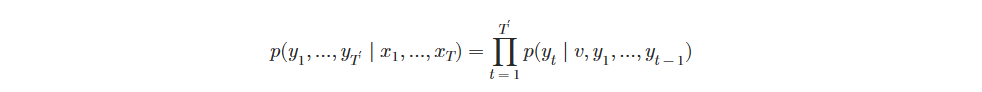 - 조건부 확률 P(y1,…,yt′∣x1,…,xt) 추정.