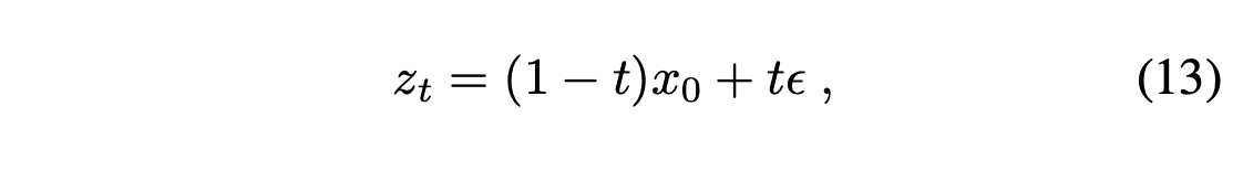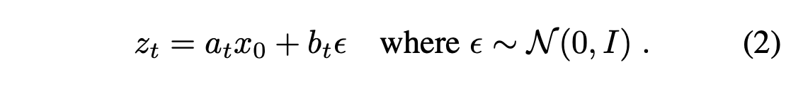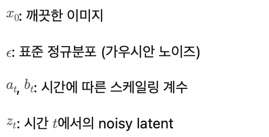 ⇒ 선형 스케일링을 통해 시간 t에 따른 중간 latent 표현을 만드는 공식